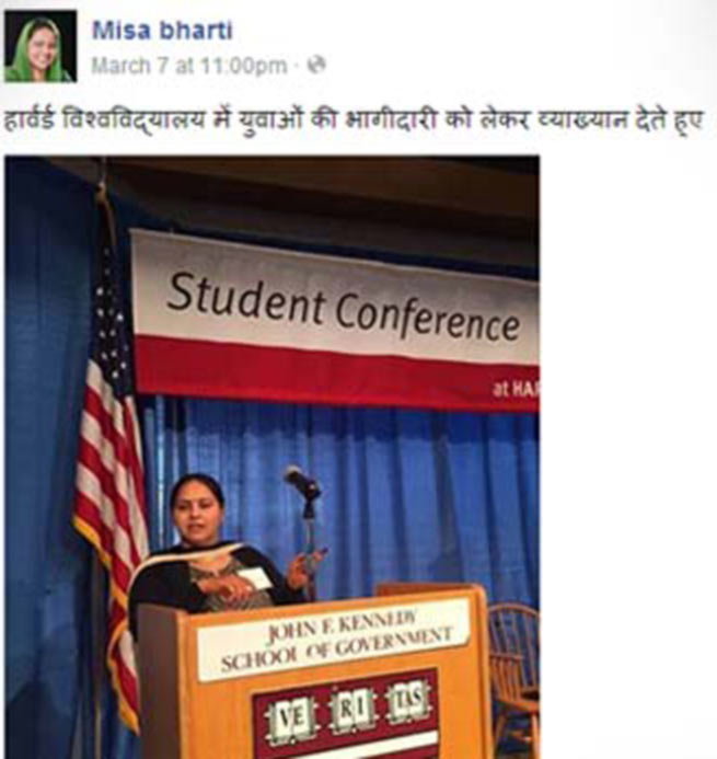 लालू की बेटी मीसा की खुली पोल, झूठ निकला हार्वर्ड में लेक्चर देने का दावा