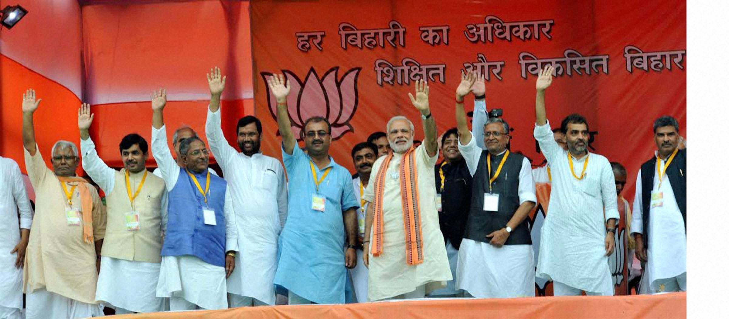 बाद में मोदी की आलोचनाओं का जवाब देते हुए नीतीश कुमार ने कहा, वह (प्रधानमंत्री) सहकारी संघवाद की बात करते हैं, लेकिन यह इसके खिलाफ है। वह हमेशा राज्य सरकारों को अपमानित करने और उन्हें बेकार बताने की कोशिश करते हैं। बिहार के मुख्यमंत्री ने आंकड़ों का हवाला देते हुए दावा किया कि बिहार ने पिछले दशक में उल्लेखनीय प्रगति दर्ज की है। प्रधानमंत्री ने कहा, मैं पहले दिन से ही कह रहा हूं कि अगर हिन्दुस्तान को आगे बढ़ना है तो केवल पश्चिमी राज्यों के विकास से ही देश आगे नहीं बढ़ेगा। देश को आगे बढ़ना है तो पूर्वी इलाके को आगे बढ़ना होगा। चाहे पूर्वी उत्तरप्रदेश हो, बिहार हो, ओडिशा हो, पश्चिम बंगाल हो। इनके विकास के बिना हिन्दुस्तान का भला नहीं होगा। बाद में सहरसा में रैली को संबोधित करते हुए प्रधानमंत्री ने आरोप लगाया कि नीतीश कुमार के लालू प्रसाद से गठजोड़ करने के बाद बिहार में ‘जंगलराज की आहट’ सुनाई देने लगी है और राज्य की जनता से अपील की कि इससे निजात पाने के लिए वे आगामी विधानसभा चुनाव में भाजपा को सत्ता में बिठाएं। राज्य में कानून एवं व्यवस्था की कथित खराब स्थिति का जिक्र करते हुए मोदी ने कहा कि बिहार में ‘जंगलराज’ की आहट सुनाई देने लगी है। उन्होंने कहा कि साल 2015 में जनवरी से जून के बीच जघन्य अपराधों के मामलों में 34 प्रतिशत वृद्धि दर्ज की गई है, हत्या के मामलों में 46 प्रतिशत वृद्धि हुई है, दंगे 72 प्रतिशत बढ़े हैं। ये जंगलराज के संकेत हैं। मोदी ने सवाल किया, यह जंगलराज के संकेत हैं या नहीं। आपका जीवन कष्टप्रद होगा या नहीं होगा। आप हमें पटना में सत्ता में बिठायें और हम आपकी समस्याओं का समाधान करेंगे। नीतीश कुमार पर निशाना साधते हुए मोदी ने कहा कि वह उस कांग्रेस की गोद में बैठ गए हैं जिसने जयप्रकाश नारायण को जेल में भेज दिया था। उन्होंने कहा कि नीतीश ने कांग्रेस से हाथ मिला कर उस समाजवादी नेता के साथ ‘धोखा’ किया है। मोदी ने कोसी की बाढ के समय गुजरात की ओर से भेजे गए 5 करोड़ रूपये का चेक लौटाने के लिए नीतीश कुमार को आड़े हाथों लिया। उन्होंने कहा, क्या सार्वजनिक जीवन में ऐसा आचरण होता है कि कोसी के लोग मरें लेकिन अहंकार नहीं छोडूंगा।