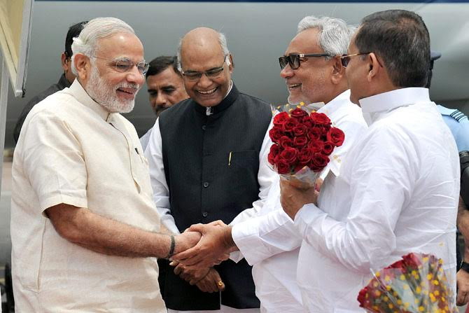 बिहार पहुंचने पर मुख्यमंत्री नीतीश कुमार ने पटना हवाई अड्डे पर मोदी की आगवानी की लेकिन आरा के समारोह में वह मौजूद नहीं हुए जहां 11 राष्ट्रीय राजमार्ग परियोजनाओं का शिलान्यास किया गया। इस दौरान मंच पर राज्य के सड़क निर्माण विभाग के मंत्री राजीव रंजन सिंह लल्लन उपस्थित थे।