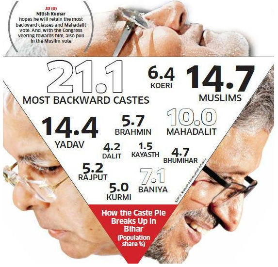 बिहार में वोटों का बंटवारा जाति के आधार पर होता है और होगा, इससे इनकार कर पाना राजनीतिक पंडितों के लिए मुश्किल है. लालू यादवों के सबसे बड़े नेता है, ए निर्विवाद है. मुलायम वोट कटवा भी बन पाएंगे, मुश्किल है. ओवैसी मुस्लिमों के नेता बनने की कोशिश में हैं. बीजेपी ने भी रामविलास पासवान, जीतनराम मांझी और उपेंद्र कुशवाह के जरिए अपने जातिगत समीकरणों को मजबूत करने की पूरी कोशिश की है.