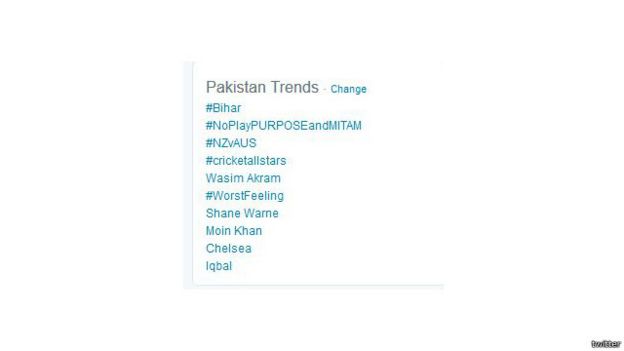 बिहार चुनावों के परिणामों पर पाकिस्तान में भले ही पटाखे न छूटे हों लेकिन पाकिस्तान में ट्विटर पर टॉप ट्रेंड बिहार है जी हां #Bihar अन्य ट्रेंड्स में क्रिकेट के कई ट्रेंड्स हैं, वसीम अकरम, शेन वार्न, मोइन खान और इकबाल ट्रेंड कर रहे हैं. अब सोचिए कि लोग बिहार पर क्या ट्वीट कर रहे हैं. सीनेटर शेरी रहमान ट्वीट करती हैं- पटाखे?? पाकिस्तानी इस बारे में सोचते भी अगर बात क्रिकेट की होती. बाकी बिहार में बीजेपी की जीत भारत के लिए महत्वपूर्ण है हमारे लिए नहीं. अमीर मतीन लिखते हैं- बिहार में कांटे की लड़ाई. ये तय करेगा कि मोदी भारत पाकिस्तान के मामले में गेम चेंजर हैं या नहीं.